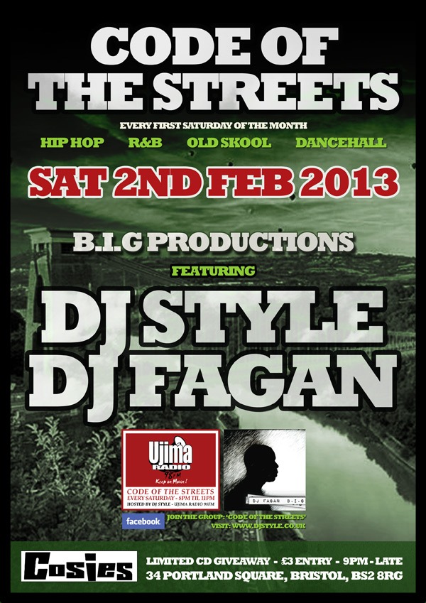 t’s that time once more for us to bring you the monthly night that unites all four corners of Bristol, with the purest tunes around, Code of the Streets. Featuring crowd favourites DJ Style & DJ Fagan (Ujima Radio).