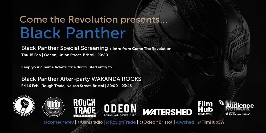 Celebrate the release of Marvel‘s historic Black Panther in style. Come the Revolution & Ujima Radio 98fm present a night of ‘Black and proud’ floor fillers ranging between soul, funk, acrobat, house and reggae at Bristol’s new music venue Rough Trade Bristol on Friday 16th Feb 2018 doors 8pm -12am.