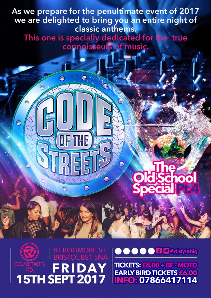 Online https://afterdark.co/events/bristol/basement-45/code-of-the-streets-old-school-pt.4
