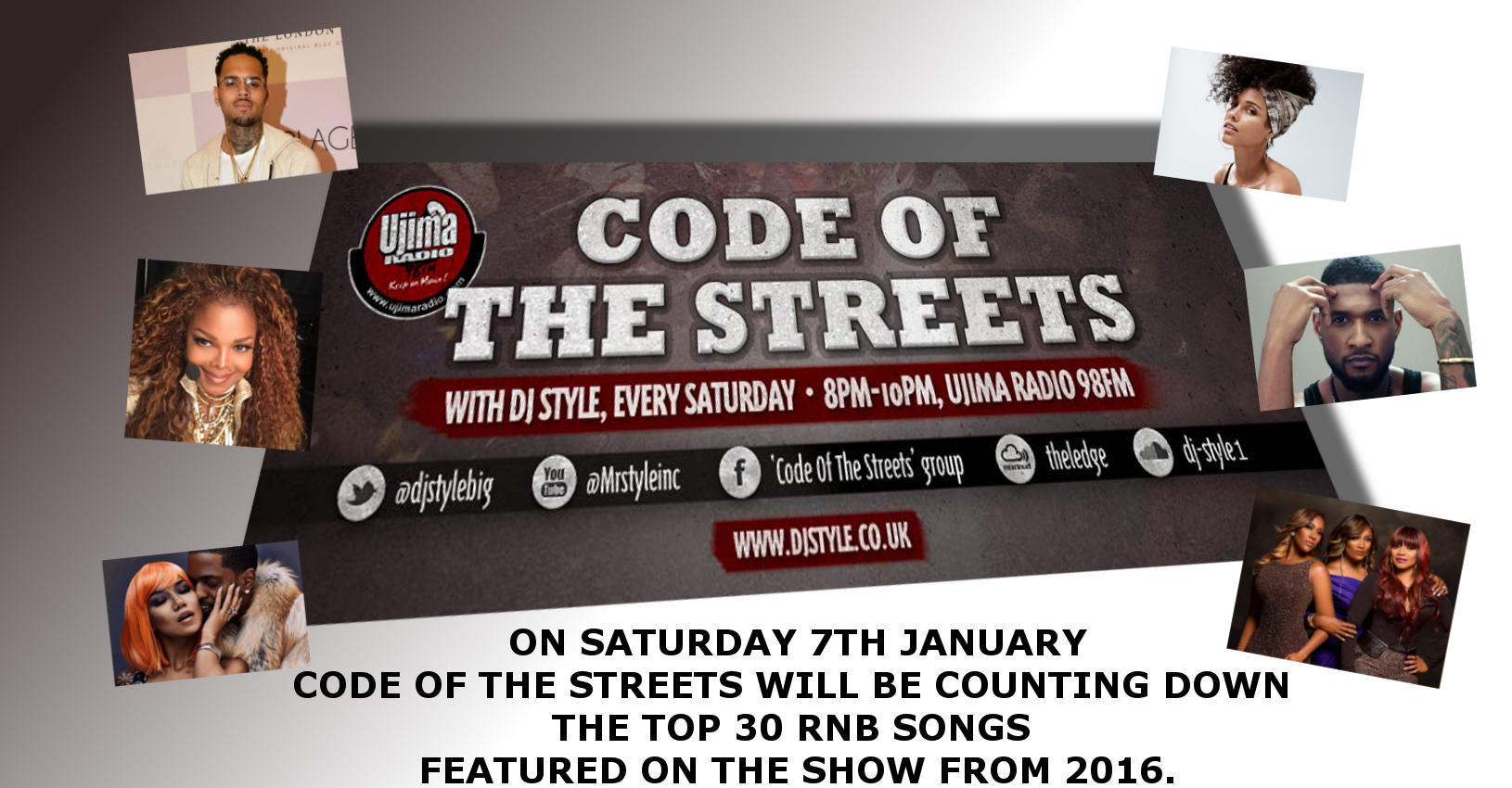 As we’ve enter into a a New Year, now is a ideal opportunity to listen back to some of the stand track from 2016, so we will be counting down The Top 30 RnB songs of last year. Always breaking the freshest new music first on Code of the Streets Ujima Radio 98fm with DJ Style listen online www.ujimaradio.com, so be sure to tune in from 8pm Saturday 7th January 2017 on the Multi Award Winning Station. Join the Facebook group page https://www.facebook.com/groups/codeofthestreets/