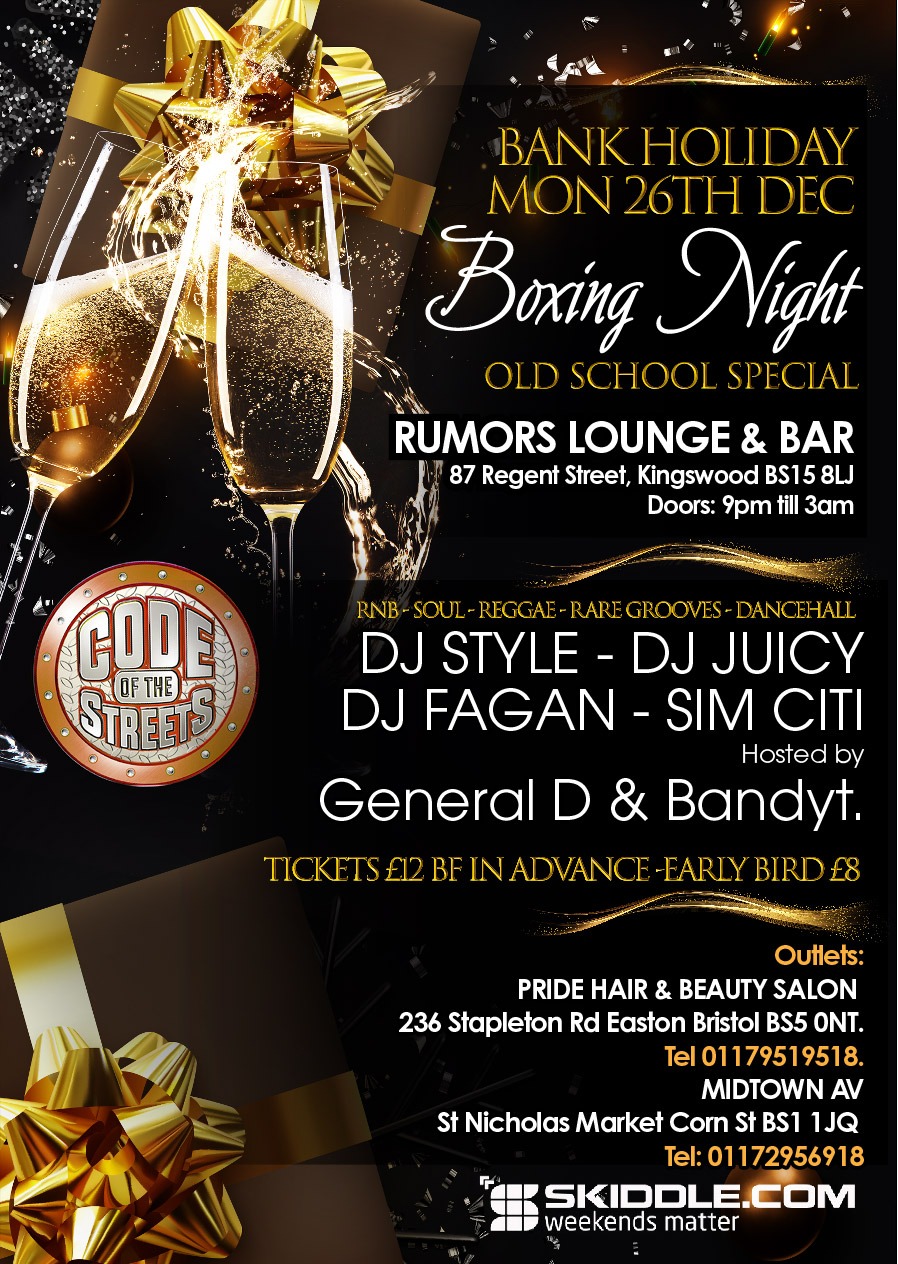 To buy tickets for this event please visit our events page: Code Of The Streets Bak Holiday Special tickets from Skiddle .