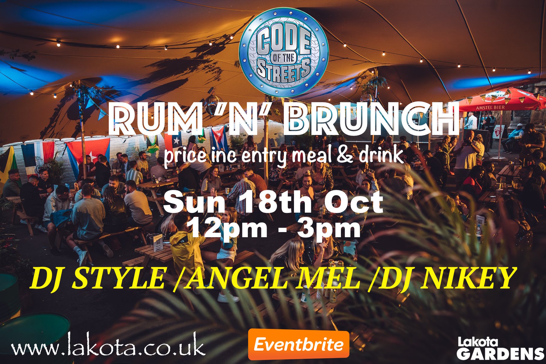After a 9 month hiatus Code of the Streets makes a welcome return for 2020 in line with the social distance guidelines for all events. So join us on Sunday 18th October @ Lakota Gardens The Courtyard Bristol for The Rum n Brunch, doors 12pm -3pm