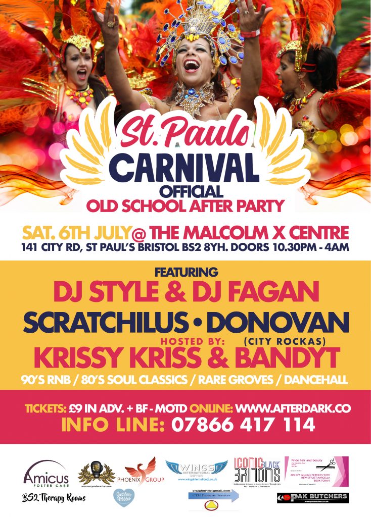 ST PAUL’S CARNIVAL OFFICIAL ‘OLD CHOOL’ AFTER PARTY SAT 6TH JULY 2019 @ THE MALCOLM X CENTRE 141 CITY RD