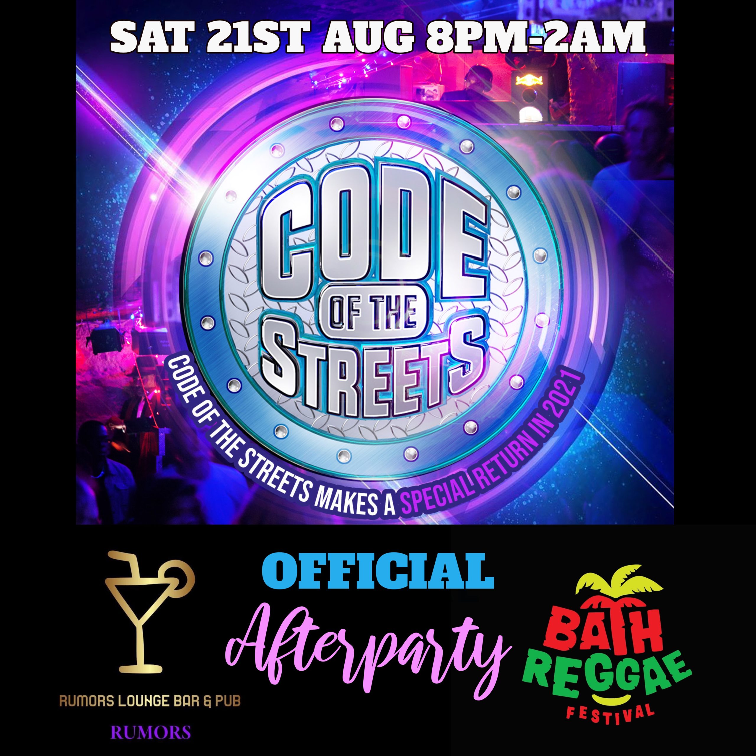 It’s now confirmed as the Official After Party for Bath Reggae Festival headline acts Dawn Penn, Maxi Priest Aswad, Wayne Wonder plus many more. Join us straight afterwards @ Rumors Lounge Bar, 87 Regent Street, Kingswood, Bristol, BS15 8LJ. Door 8pm – 2am, for the return of Code of the Streets.
