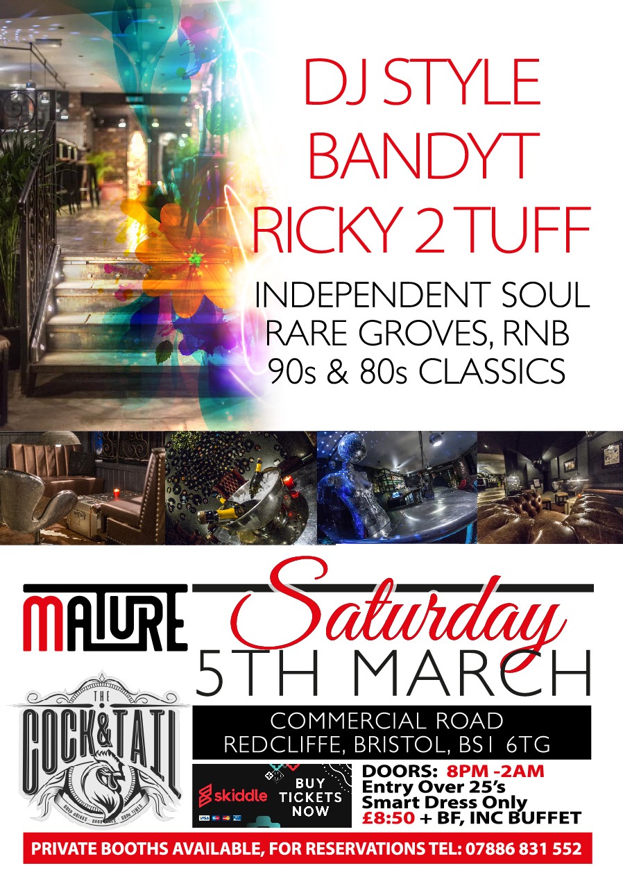 Listen to live audio from the relaunch of MATURE Sat 5th March 2022 @ The Cock ‘N’ Tail Bristol featuring DJ Style, Ricky 2 Tuff & Bandy Pt.1.