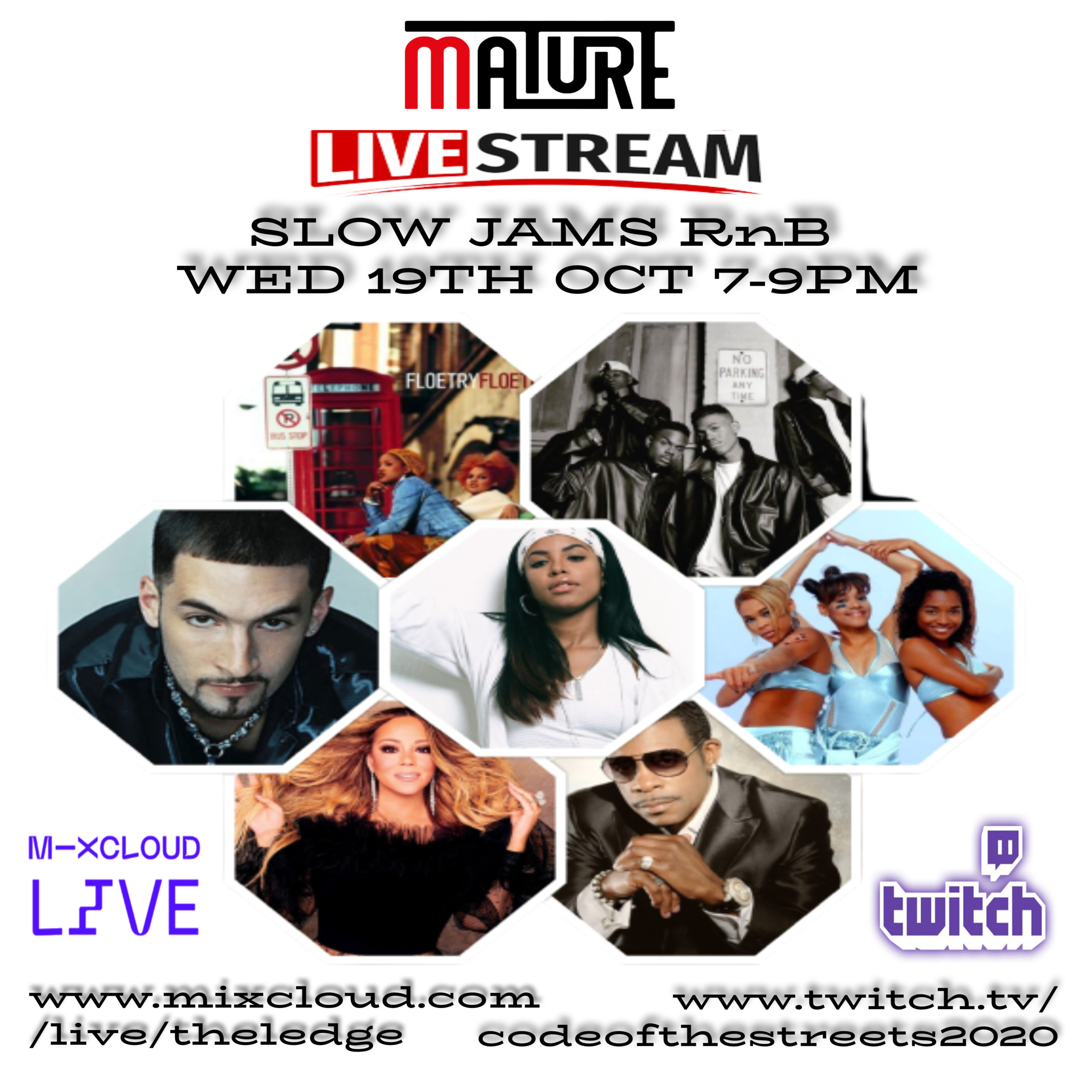 This coming Wednesday MATURE Events will be streaming a Slow Jams Special set, the playlist has been curated by the viewers. You can post your song request live in the chat, Tune in Wed 19th Oct 7-9pm uninterrupted from these platforms. www.mixcloud.com/live/theledge or www.twitch.tv/codeofthestreets2020.
